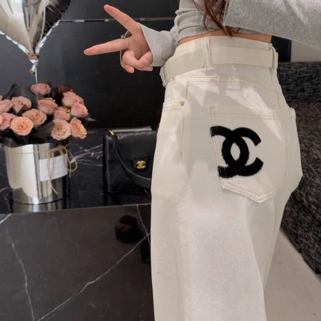 早秋2025白色高腰新款宽松牛仔裤显瘦长裤刺绣直筒百搭拖地裤子