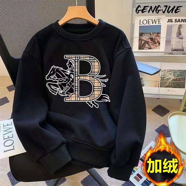 冬季加絨加厚輕奢高級感休閑衛衣男寬松長袖潮牌圓領保暖上衣男裝