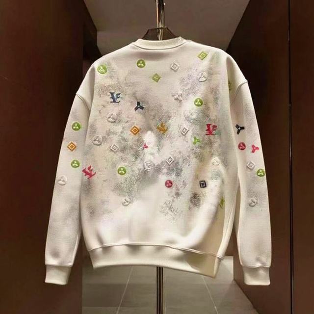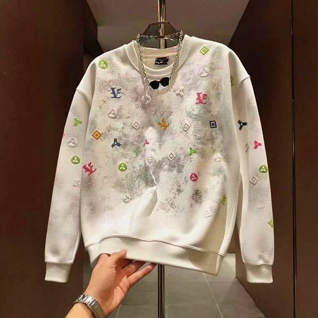 冬季高端紮染衛衣男長袖發泡圓領加絨加厚輕奢士休閑保暖潮牌上衣
