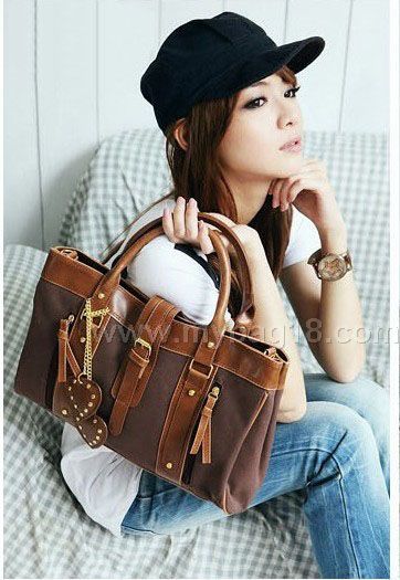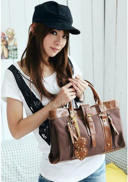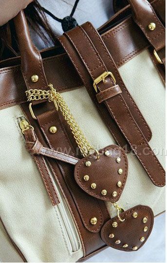 BG1130帆布鉚釘愛心皮帶手提/側背包(咖啡)