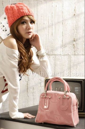 漆皮個性小方包(粉色)